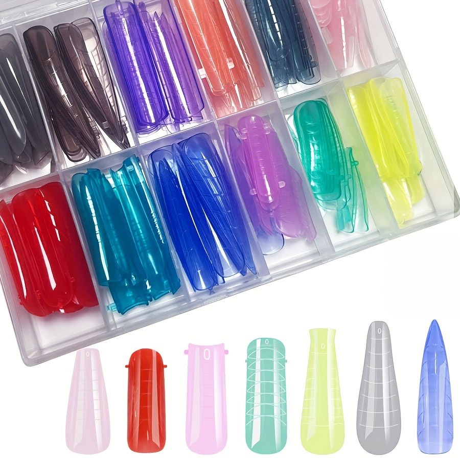 Σετ Dual Forms που περιλαμβάνει 288 επαναχρησιμοποιούμενα καλούπια, οργανωμένα σε πρακτική κασετίνα. Το σετ διαθέτει 12 διαφορετικά χρώματα, με κάθε χρώμα να αντιστοιχεί σε διαφορετικό σχήμα νυχιού, προσφέροντας μεγάλη ποικιλία επιλογών για κάθε τεχνική και αισθητική.